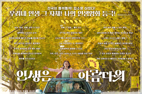 뮤지컬 영화 인생은 아름다워는 2022년 9월 28일 개봉되었다. 한국에서 뮤지컬 영화는 인생은 아름다워를 포함해 총 37편 정도가 개봉된 걸로 검색이 되고 있다. 그만큼 한국에서 뮤지컬 영화는 흥행도 어렵고 제작도 쉽지 않은 장르가 아닌가 싶다. 인생은 아름다워는 현재 박스오피스 6위로 누적 관객수도 100만 명이 넘은 걸로 확인된다. 인생은 아름다워는 인생에서 찬란했던 순간을 찾아 추억여행을 떠나는 영화이다. 여기에 음악이 어우러진 영화이다. 영화는 현재와 과거를 넘나드는 방식으로 진행이 된다.